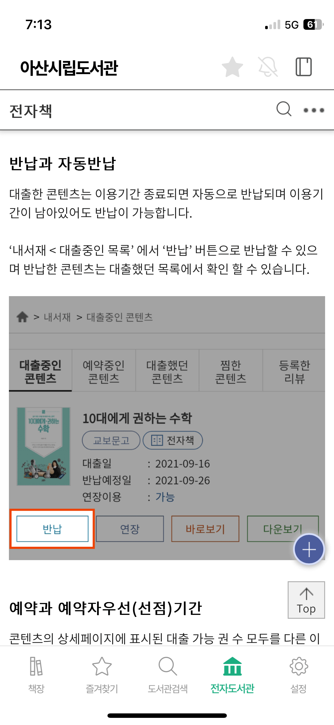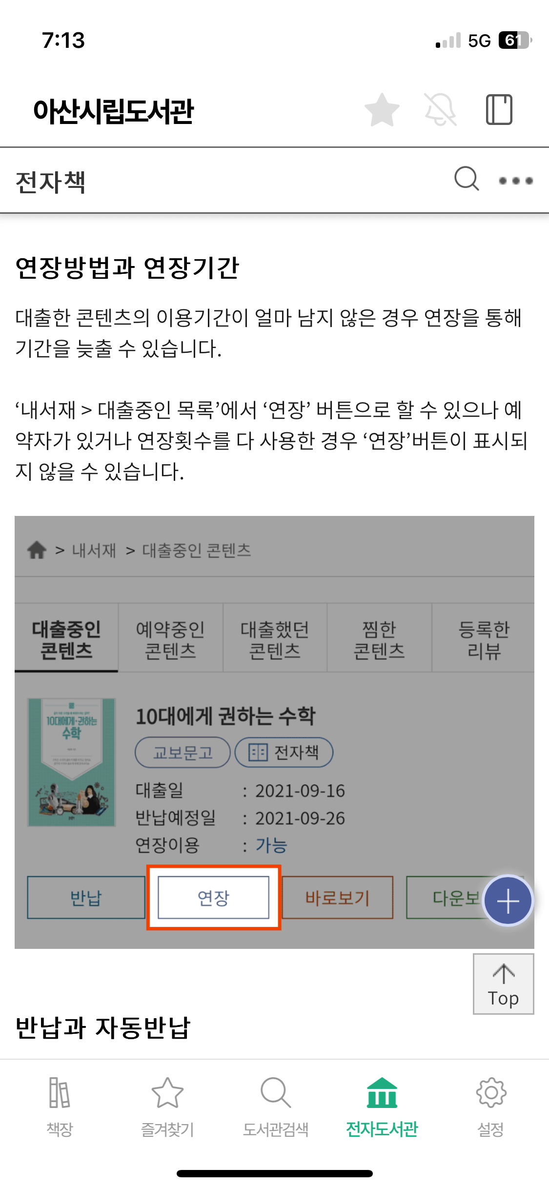 ▶ 대출한 도서의 반납 기한이 다가오면 별도의 비용 없이 대출 기간을 연장할 수 있습니다.
