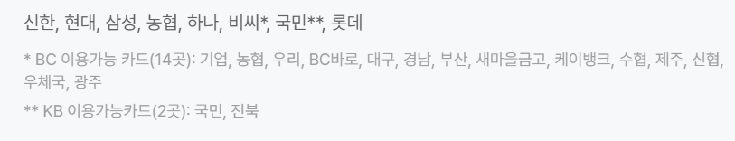 앞서 언급했듯이, 사용하지 않던 카드포인트를 온누리상품권으로 전환할 수 있게 되었습니다. 이 경우 2%의 추가 적립 혜택까지 제공됩니다. 현대카드, 리브메이트, 신한슈퍼SOL, NH멤버스, 삼성카드, 비씨TOP, L.POINT, 우리WON멤버스 등에서 이 서비스를 이용할 수 있습니다.